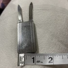 This vintage money clip is a unique accessory that combines functionality with style. Made by Imperial from stainless steel, it features a slim fold design with a nail file and pocket knife and has been engraved. Please check the pictures to see the engraving. Measuring 2 inches when folded and 4 inches when opened, it is perfect for both men and women alike. The silver striped pattern adds a touch of elegance to the money clip, while the personalized engraving option makes it a great gift idea. Whether you're looking for a practical item to keep your cash secure or simply want to add a vintage touch to your accessory collection, this money clip is the perfect choice. The money clip is in good Preowned condition does have mild scratching on the surface. Please check the pictures. Also has been engraved with a business from Charleston West Virginia. Please message me with any questions or concerns and thank you for looking.