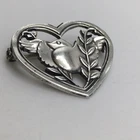 925 Sterling Silver Vintage Signed J Coro Bird with Peace Olive Branch in Heart Pin Broach #2878 Hand polished but this is a truly vintage piece and still holds tarnish and age. Measuring Tools not included. Combined Shipping! 1st item $4.59, each additional item is $1. Max shipping cost $10. Combine shipping for up to 7 days! We value YOU! Items are returnable and fully refundable! SilverSchark began as a hobby that grew into a business. We take old retired sterling silver jewelry and revitalize it to wearable condition. Utilizing an ultrasonic machine with sterling silver solution most items are restored to their original beauty. Occasionally scratches are buffed out and some minor repairs are made to bring these tired pieces back to life. Diamonds are always tested. If a piece is not stamped or is suspected of not being sterling silver, the item is acid tested for confirmation. Tests will always be listed in the description. We understand that patina is desired on vintage or antique items so some of the listings will not be cleaned and polished. The description of each listing will tell its tale of restoration. Combined shipping is always welcome! Just ask for an invoice if your cart doesn't look correct. Max shipping cost is $10 per shipment regardless of number of items!