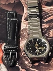 The watch was recently serviced by a watchmaker ( oil down,clean ) working condition rotating inner bezel The crystal looks in good condition no visible scratches the case is in good condition as well but the back side does have some scratches ( please see pictures ) The stainless steel bracelet is in good condition and looks like it has all the links still in place, and you will get a leather strap (black) as well Remember that the pictures are part of the description as well if you made it this far. Thanks for stopping by. Note: Selling this item as it is