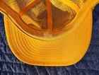 Vintage JOHN DEERE DIESEL POWER EQUIPMENT Snap Back Trucker Hat-Unworn DIMENSIONS: Marked size: not marked for size. Adjustable. Total weight: 2.5 ounces. DESCRIPTION: Vintage JOHN DEERE trucker-style hat. By Louisville Mfg. Co., USA. Yellow mesh with yellow fabric bill. Snap back. Black/yellow fabric patch on front: "John Deere Diesel Power Equipment Co." All original. Maker's marks: "Louisville Mfg. Co. - Made in USA - Louisville, KY". Notice that no foam was used in the construction of this hat. CONDITION: This hat is in excellent "as new" original condition. No damage or wear. I see no evidence this hat was ever worn. No tears, pulls, snags, creases. Snap back is in excellent condition with no splits, cracks, breaks, losses. Very clean as found. No pet, cigarette or other unpleasant odors. No stains, discolorations, fading, soiling.