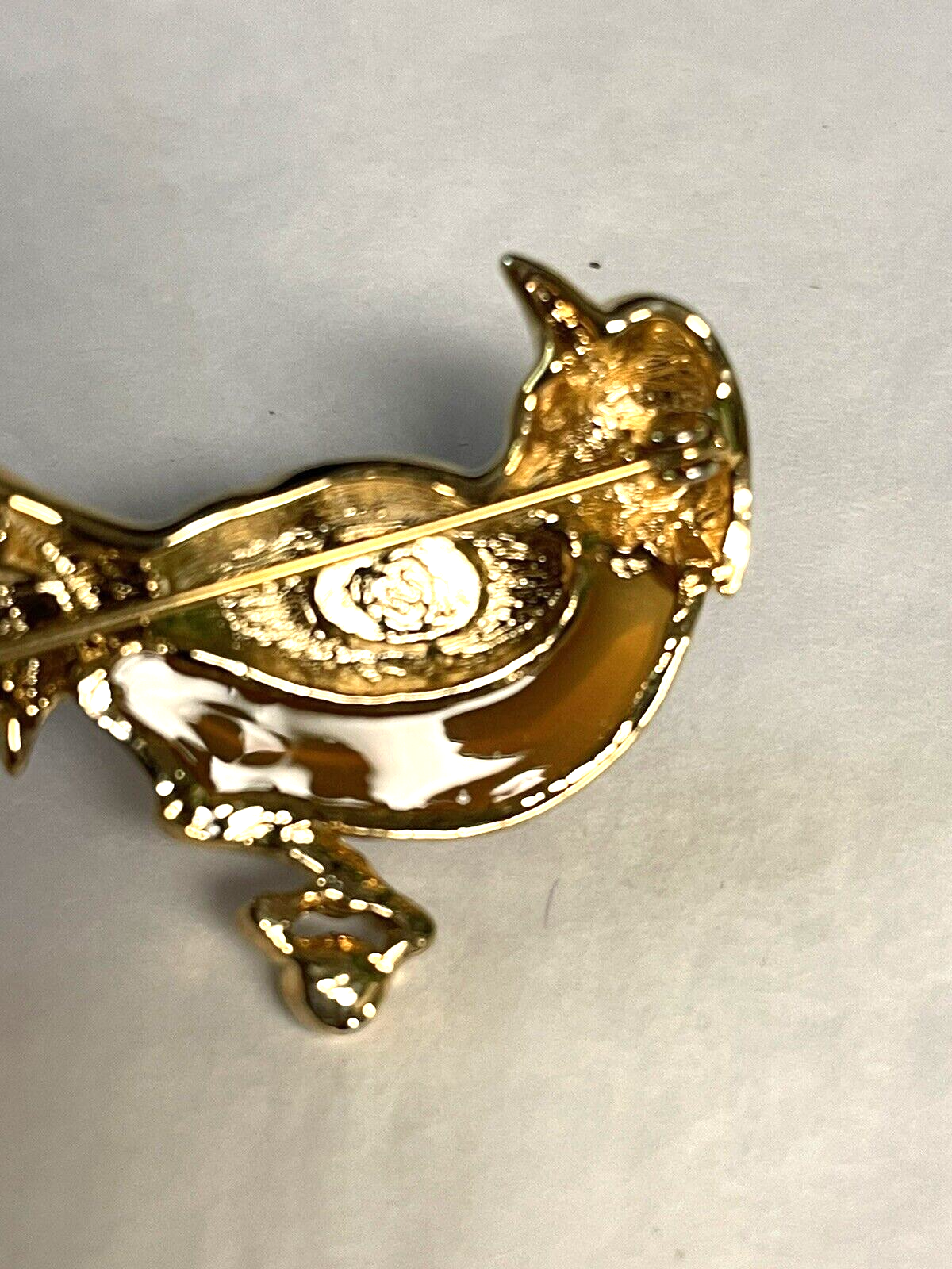 Add a touch of whimsy to your outfit with this Premier Design Jelly Belly Fanciful Bird Parrot Enamel Rhinestone Figural Brooch. The brooch features a colorful enamel design with sparkling rhinestones that will catch everyone's eye. The intricate details of the bird and parrot make this brooch a unique addition to any jewelry collection. Perfect for a gift, Christmas, or birthday, this brooch is sure to please any fashion-forward woman. The brooch is 5" in length and is an original piece from an undated era. This brooch is not handmade and comes with no seller warranty. Add this Premier Design Jelly Belly Fanciful Bird Parrot Enamel Rhinestone Figural Brooch to your collection today! T hank you for looking. This item is from a smoke free home. Please view all the photos. Check out all my other items.