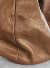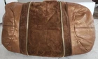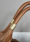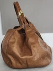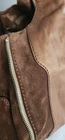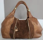 Vintage Jimmy Choo Expandable Neutral Handbag. There are some slight imperfections on the buckskin section next to the zipper and some very small marks on the side (all shown in photos). Handles are very clean and the zippers all work well. Interior has no stains or tears.