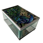 Hand painted. Like new. BLR 126 Peacock. Glass, metal and mirror base. 6" x 4" x 3".
