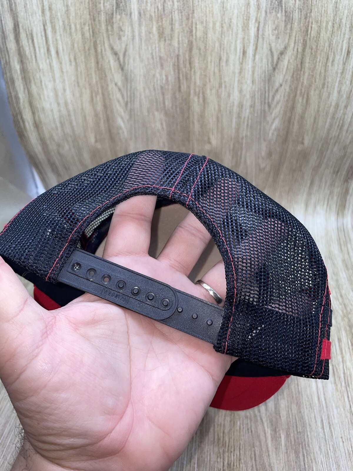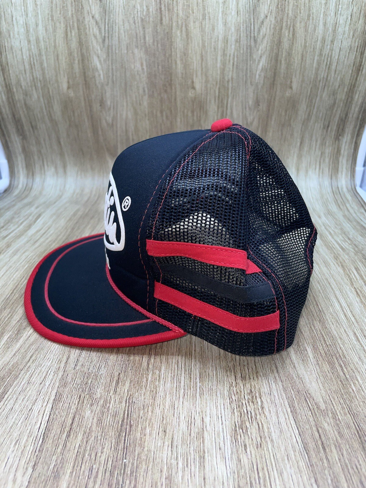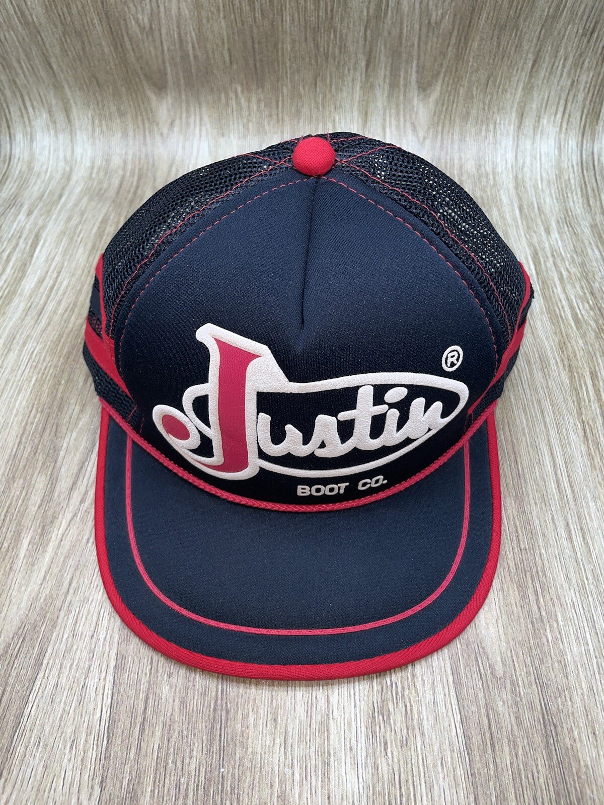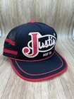 This vintage Justin Boots Western Wear trucker hat is a must-have for any fan of the classic 80s Western style. The hat features a black foam mesh design with white and red stripes, and is adorned with snaps to add a touch of vintage flair. The adjustable strap ensures a comfortable fit for all head sizes. The hat is made of high-quality materials and is perfect for any casual occasion. Whether you're out for a day of work or play, this hat is sure to turn heads and add a touch of style to your wardrobe. Don't miss out on this one-of-a-kind piece of vintage fashion!