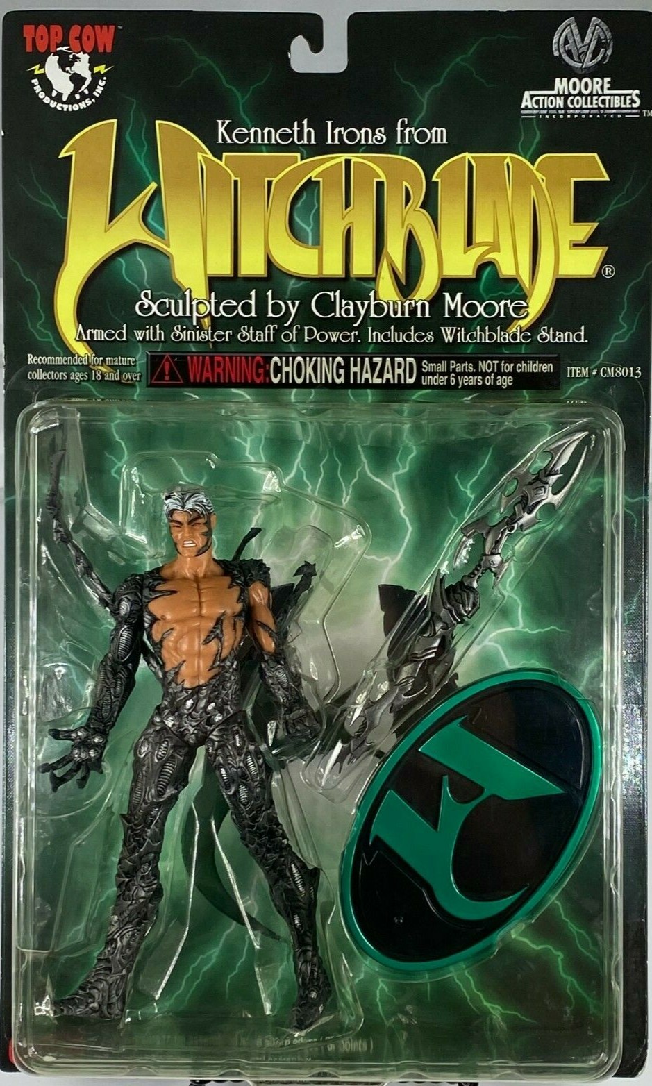KENNETH IRONS OF WITCHBLADE - 6 INCH ACTION CLAYBURN MOORE COLLECTIBLES VINTAGE SEALED NEW VINTAGE KENNETH IRONS FROM WITCHBLADE ACTION FIGURE 1998 TOP COW, CLAYBURN MOORE ACTION FIGURE COLLECTIBLE AWESOME DETAIL, SCULPTING AND PAINT COMES WITH WEAPON AND STAND ARMED WITH SINISTER STAFF OF POWER FACTORY SEALED NEVER OPENED LIMITED EDITION✨✨ VERY COOL AWESOME FIGURE HIGHLY COLLECTIBLE GREAT GIFT FOR THE SERIOUS COLLECTOR OR TO ADD TO YOUR COLLECTION STILL TIGHTLY SEALED BOARD AND PLASTIC ARE IN EXCELLENT SHAPE VERY VERY MINOR BEND ON BOTTOM RIGHT AND LEFT OF BOARD LOOKS BRAND NEW SUPER COOL COMIC BOOK FIGURE Will ship to you with great care. Will ship to the United States and Protectorates via USPS International shipments will ship via Ebay's Global Shipping Program (GSP) International packages will ship within one business day to eBay's GSP. eBay's GSP will then ship the package internationally. Handling and Shipping times may vary with GSP. Brought to you by The VinKris Collection