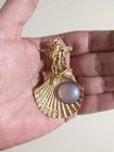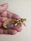 Please see items for size and condition description. Fantastic Kirks Folly whispering angel pendant / brooch with original necklace. Gold tone with AB crystals and removable magnetic imitation pinkish purple pearl stone. Both the pendant and chain are marked. No missing stones and no verdigris. Solid necklace clip and pin clasp. Great for your Kirks Folly collection! Message me w questions. Neck stand not included. As is. Thanks!
