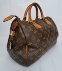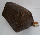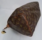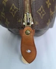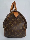 This vintage Louis Vuitton Speedy monogram bag features a zipper that opens to a lined interior with an open slip pocket at the side. The original lock and keys are still attached! Made in France! I have used LegitGrails to authenticate this bag which can be verified with Unique Code: B7574679180108. CONDITION: Fairly good used vintage condition. The exterior is in fairly good condition, but one bottom corner is a bit worn, so please note that closeup. The interior is in fair condition, as it does have nail polish and some other staining and marking. The handles show some minor marking and wear as well as some mild darkening from being held. The hardware is in good functional condition, just some tarnishing and scratches from use.