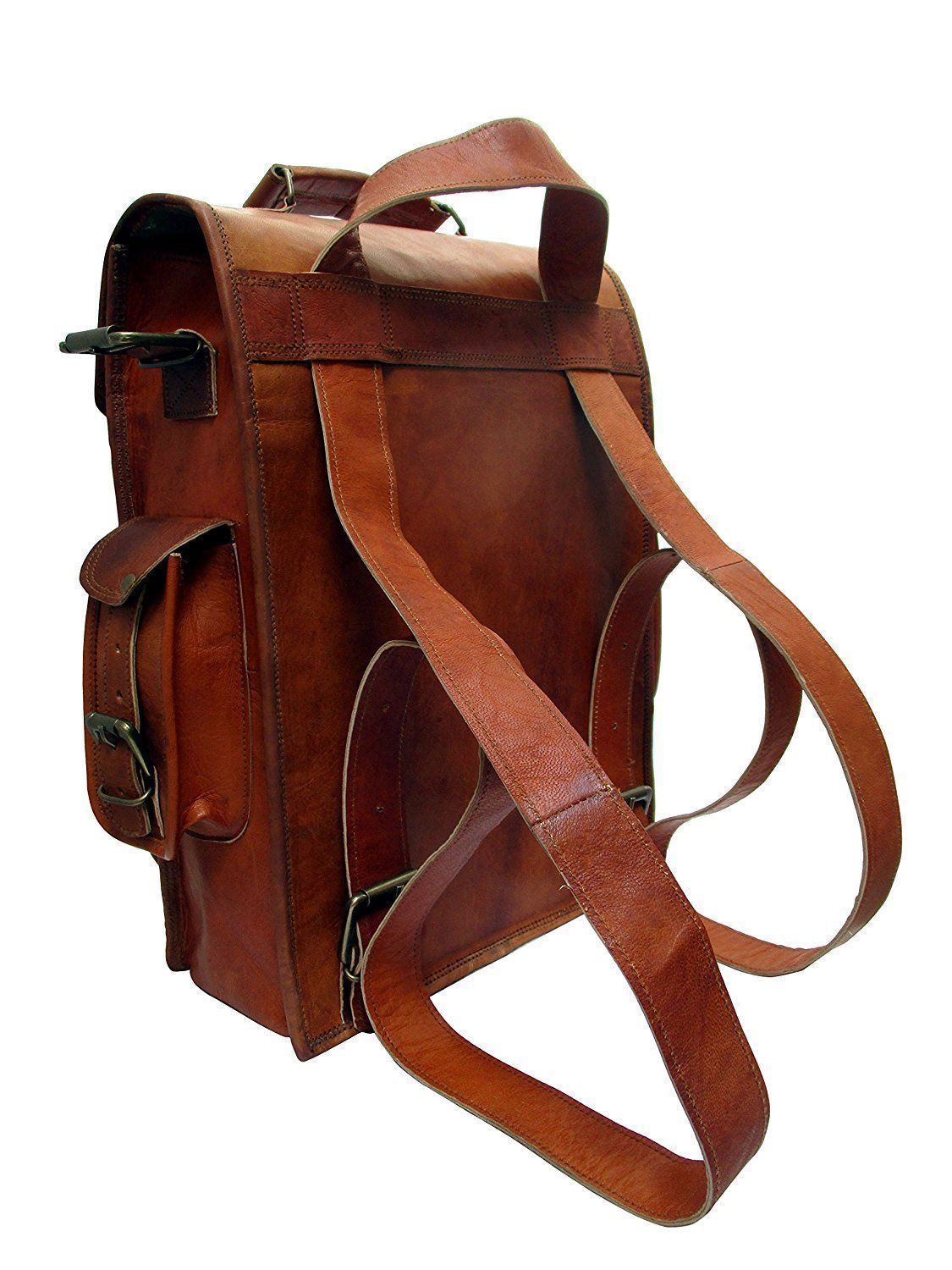 Welcome Leather Backpack Rucksack Sling Satchel messenger bag 2 in 1 purpose VINTAGE HANDMADE GOAT LEATHER MESSENGER BAGS SATCHEL BUSINESS BAG ADJUSTABLE SHOULDER STRAP 100% genuine goat leather messenger bag with a durable inner lining made of canvas. Designed to carry mini laptops, tab, documents or other personal belongings, etc. A genuine hand made product using chemical/dye-free leather. Natural oils and light have been used to obtain the style of the leather - chemical free! This bag features a wonderful unique and vintage look, designed to carry mini laptops, tab, documents, personal belongings etc. Perfect for the office, school or as a gift! Specifications: Made from 100% genuine, strong, lightweight, durable goat leather, tanned without the use of chemicals Adjustable shoulder strap, roll close backpack with small front pocket. 2 big inner compartment for carrying files, mini laptop's, tab's etc with padding. 2 zipper compartments for important documents/paperwork etc. Inner canvas lining Vintage leather wash Leather softens and darkens with use Handmade in India by experienced crafts people. Size 11 inch wide X 15 inch height Please provide your telephone number as well, so that the post office can contact you when your item arrives, or the item will be sent back to us. We will not be able to resend the item in that case so please make sure to provide your contact number. Please do provide your full address and phone number by eBay message immediately after making the payment for easy delivery. We normally ship within 1 to 2 days. We will offer the tracking number you can track it during the whole shipping process after shipment please check your tracking number after 3 to 4 days and please contact us in any query regarding your package as soonest We only accept Pay pal Payment is to be completed within 3 days of the purchase. Please contact us if you can't make the payment promptly. Otherwise, we will resume the right to re-list the item and the unpaid item report will be made correspondingly. RETURN POLICY • In case of return of the goods, buyer has to borne the shipping charges. • Customs duties and other duties levies in destination country are responsibility of the customer. • We will exchange the item if returned to us within 14 days of original packing. • The item should not be used. • No alterations Must be Done to Item. Otherwise We won't take it Back • Buyer Must Inform within Two days after Getting the product about any Issues with the Item. TERMS & CONDITIONS Customers are require to provide full & accurate information at the time of order. No warranty. Dry cleaning only. We use standard shipping carriers for national & international shipping. Accessories & Stitching Pieces shown in the image are just for photography purpose. There may be color variation due to difference in resolution of the photo & the actual color. Please clarify all your doubts before buying. In case the item is out of stock your entire amount will be refunded via the same way the payment was made. Offer price is for per piece. About Us We manufacture ethically designed leather bags of great quality. The most important thing, these bags are not factory made, all of our bags are locally hand crafted in countries. We offers customized designing and wholesale prices for bulk order. We welcomes you to come and visit our manufacturing unit. For more details, please write to us. Feedback We are New Seller on e-bay, So Leave your Positive Feedback. As it really Matters to us. Give us a Chance to Serve You with high-quality Leather Products at reasonable price • Please do not leave a negative feedback as a way to communicate. Any rating given to a seller can neither be changed nor modified. So better communicate for faster resolution to any disputes. • If you have any concerns regarding your purchase, please contact us via phone or mail, we assure you that a satisfactory resolution will be reached. • Please help us maintain a 5 Star DSR rating in all 4 rating categories, if you feel otherwise, please let us know how we can score a perfect rating from you before you rate us.