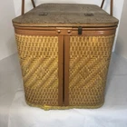 In decent shape, some stains on exterior and one break in the wicker. Top could use a refinish. Fast one day handling. Shipped via FedEx ground to continental US only. Unsatisfied for any reason? 30 day return policy offered with no questions asked. Thanks for looking!