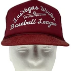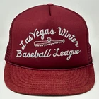 Las Vegas Winter Baseball League Trucker Hat Vintage 80s Red Rope Roping Cord Corded San Sun Five Panel A-Frame Mesh Snapback Baseball Cap Will be shipped in a box. Condition: In gently used condition. No flaws noticed. Has been cleaned and sanitized. See photos.
