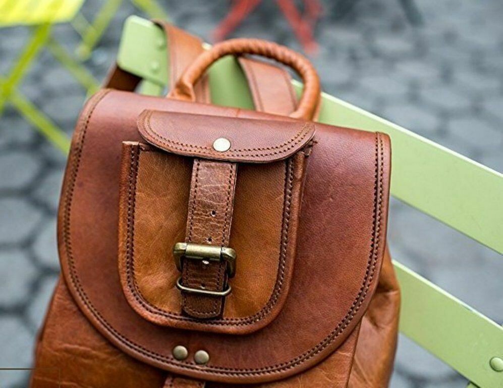 Features Green canvas fabric Internal 1 big compartment 4 small pockets Size:- 16 x 8 x 8" inch ADJUSTABLE BACK SHOULDER STRIP (See the picture for more detail) Strong, light-weight goat leather, tanned without the use of chemicals Leather softens and darkens with use Color and texture of the leather varies Natural real leather smell, just like a luxury car or lounge suite Solid brass buckles and fixtures - will last for years Has a wonderful natural look, and feel Each bag is uniquely individual due to slight color and marking variations on natural leather Brand New Handmade Leather Bag without tag