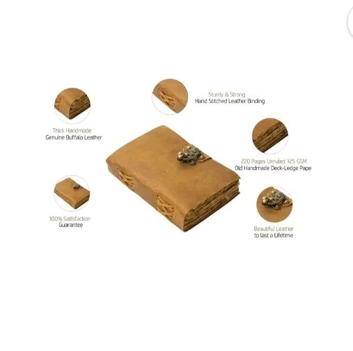 This stunning leather journal is the perfect addition to any collection. Handcrafted in India by DIVYA VINTAGE CRAFT, this journal features deckle edge paper and a leather bound cover. Personalize it to make it your own and use it for writing, note-taking, or planning. This unit is sold as a single item and is perfect for those looking for a unique and high-quality notebook. Ideal for use in the office or at home, this journal is a true work of art and will be sure to impress. ✦ Leather – Soft Supple Genuine Leather with Best Quality ✦ Soft Natural Handmade Leather Cover ✦ Lock - Best Lock ✦ Color - Dark Brown (Green)(Black)( Brown) ✦ Paper - Handmade Antique Deckle Edge Paper ✦ Size - Custom (in inches) ✦ Pages - 200 Pages Both Size