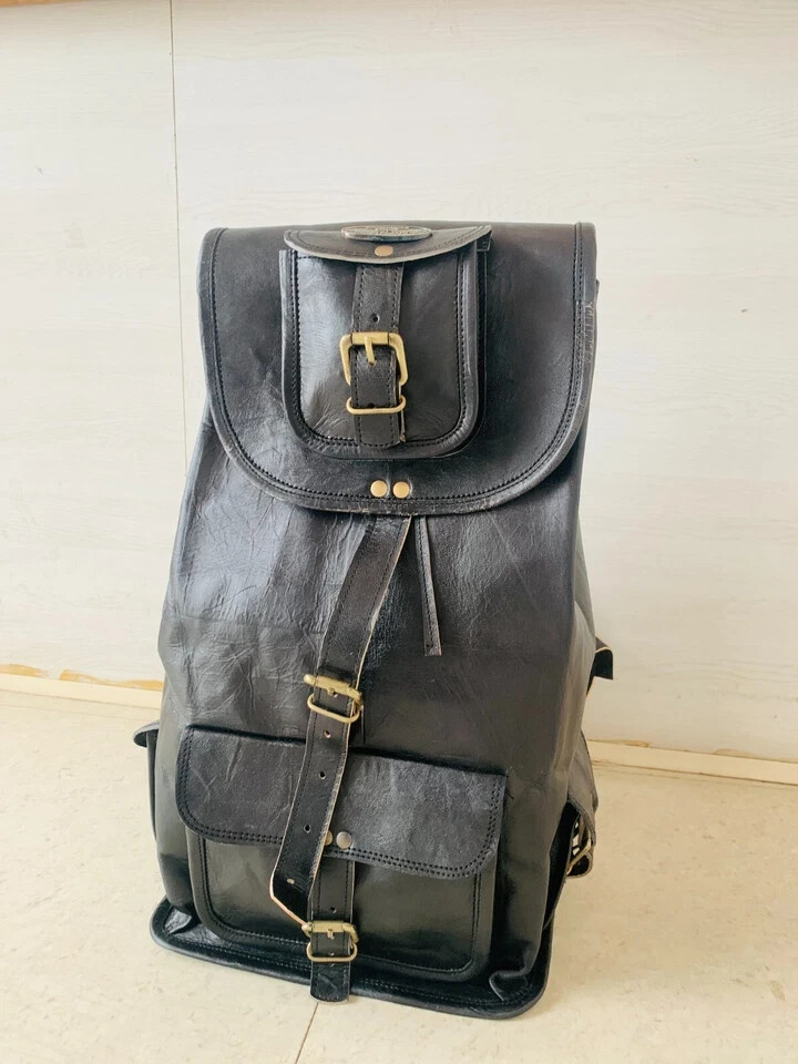 Features Green canvas fabric Internal 1 big compartment 4 small pockets ADJUSTABLE BACK SHOULDER STRIP (See the picture for more detail) Strong, light-weight goat leather, tanned without the use of chemicals Leather softens and darkens with use Colour and texture of the leather varies Natural real leather smell, just like a luxury car or lounge suite Solid brass buckles and fixtures - will last for years Has a wonderful natural look, and feel Each bag is uniquely individual due to slight color and marking variations on natural leather Brand New Handmade Leather Bag without tag.