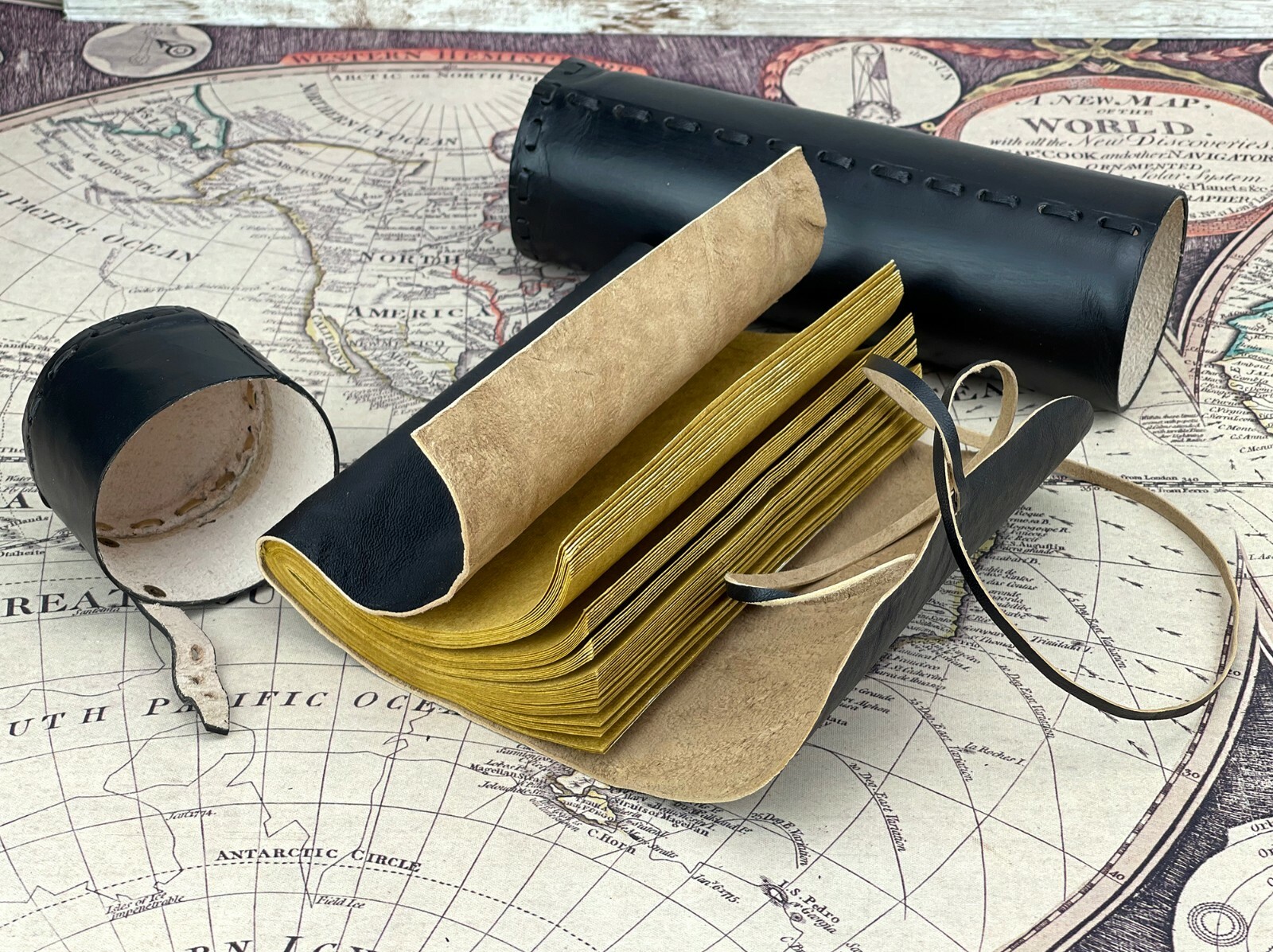 This vintage leather journal is absolutely stunning! The handmade deckle-edged paper gives it such an authentic, old-world charm, perfect for calligraphy or travel notes. The included leather tube adds a nice touch for safekeeping. The craftsmanship is incredible—each one is made by hand, just like medieval diaries. The 7x5 size is ideal for carrying around, and the paper holds ink beautifully. A must-have for writers and history lovers!
