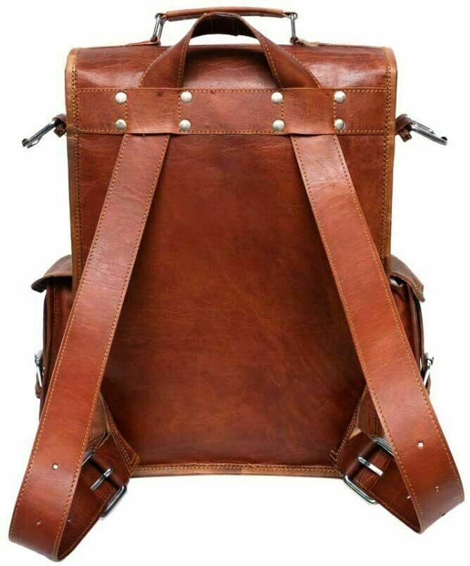Leather Backpack Rucksack Sling Satchel messenger bag 2 in 1 purpose VINTAGE HANDMADE GOAT LEATHER MESSENGER BAGS SATCHEL BUSINESS BAG ADJUSTABLE SHOULDER STRAP 100% genuine goat leather messenger bag with a durable inner lining made of canvas. Designed to carry mini laptops, tab, documents or other personal belongings, etc. A genuine hand made product using chemical/dye-free leather. Natural oils and light have been used to obtain the style of the leather - chemical free! This bag features a wonderful unique and vintage look, designed to carry mini laptops, tab, documents, personal belongings etc. Perfect for the office, school or as a gift! Specifications: Size:-Large 11x15x5" inch Made from 100% genuine, strong, lightweight, durable goat leather, tanned without the use of chemicals Adjustable shoulder strap, roll close backpack with small front pocket. 2 big inner compartment for carrying files, mini laptop's, tab's etc with padding. 2 zipper compartments for important documents/paperwork etc. Inner canvas lining Vintage leather wash Leather softens and darkens with use Handmade in India by experienced crafts people Please provide your telephone number as well, so that the post office can contact you when your item arrives, or the item will be sent back to us. We will not be able to resend the item in that case so please make sure to provide your contact number. Please do provide your full address and phone number by eBay message immediately after making the payment for easy delivery. We normally ship within 1 to 2 days. We will offer the tracking number you can track it during the whole shipping process after shipment please check your tracking number after 3 to 4 days and please contact us in any query regarding your package as soonest We only accept Pay pal Payment is to be completed within 3 days of the purchase. Please contact us if you can't make the payment promptly. Otherwise, we will resume the right to re-list the item and the unpaid item report will be made correspondingly. RETURN POLICY • In case of return of the goods, buyer has to borne the shipping charges. • Customs duties and other duties levies in destination country are responsibility of the customer. • We will exchange the item if returned to us within 14 days of original packing. • The item should not be used. • No alterations Must be Done to Item. Otherwise We won't take it Back • Buyer Must Inform within Two days after Getting the product about any Issues with the Item. TERMS & CONDITIONS Customers are require to provide full & accurate information at the time of order. No warranty. Dry cleaning only. We use standard shipping carriers for national & international shipping. Accessories & Stitching Pieces shown in the image are just for photography purpose. There may be color variation due to difference in resolution of the photo & the actual color. Please clarify all your doubts before buying. In case the item is out of stock your entire amount will be refunded via the same way the payment was made. Offer price is for per piece. About Us We manufacture ethically designed leather bags of great quality. The most important thing, these bags are not factory made, all of our bags are locally hand crafted in countries. We offers customized designing and wholesale prices for bulk order. We welcomes you to come and visit our manufacturing unit. For more details, please write to us. Feedback We are New Seller on e-bay, So Leave your Positive Feedback. As it really Matters to us. Give us a Chance to Serve You with high-quality Leather Products at reasonable price • Please do not leave a negative feedback as a way to communicate. Any rating given to a seller can neither be changed nor modified. So better communicate for faster resolution to any disputes. • If you have any concerns regarding your purchase, please contact us via phone or mail, we assure you that a satisfactory resolution will be reached. • Please help us maintain a 5 Star DSR rating in all 4 rating categories, if you feel otherwise, please let us know how we can score a perfect rating from you before you rate us.