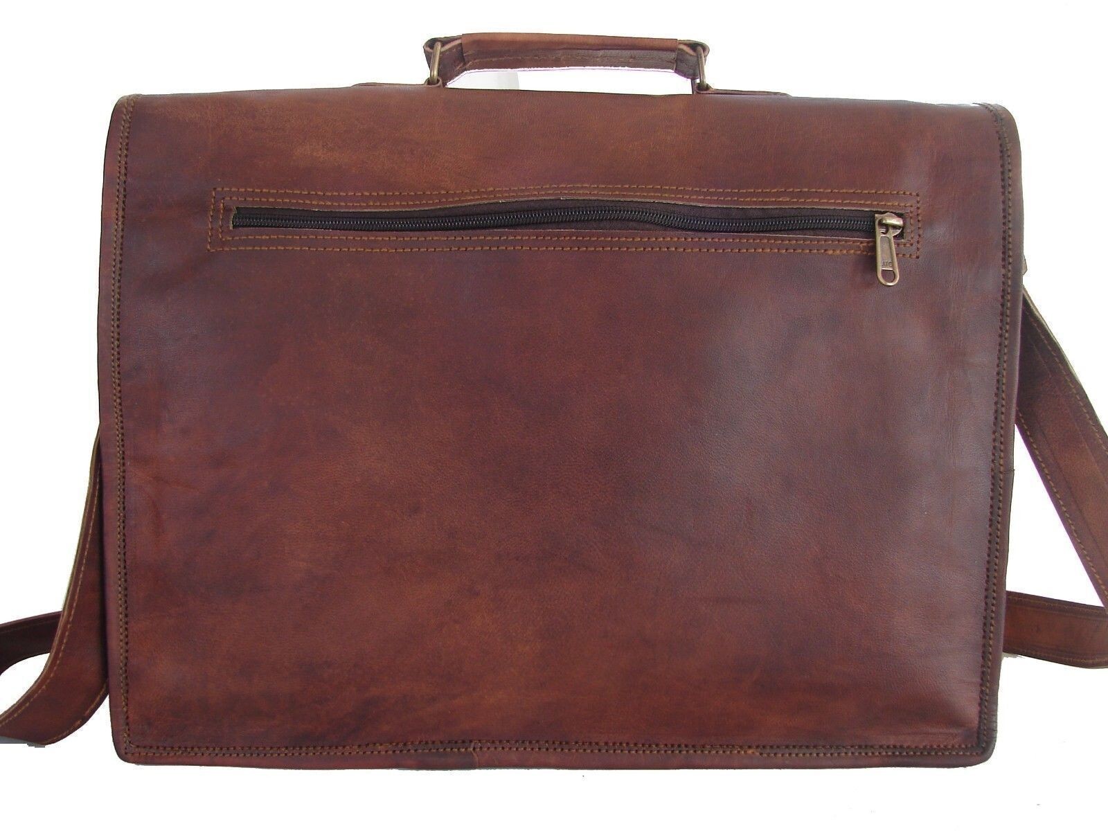 HANDMADE BRIEFCASE SATCHEL BAG FOR STUDENTS, OFFICE WORKERS AND COMMON PEOPLE Features Green canvas fabric Internal 2 compartments and 2 zipper 1 small pockets on front of the bag Back side 1 zipper Size:-11 x 15 x 5" inch Large Thick adjustable strip (See the picture for more detail) Strong, light-weight goat leather, tanned without the use of chemicals Leather softens and darkens with use Color and texture of the leather varies Natural real leather smell, just like a luxury car or lounge suite Solid brass buckles and fixtures - will last for years Has a wonderful natural look, and feel Each bag is uniquely individual due to slight color and marking variations on natural leather Brand New Handmade Leather Bag without tag