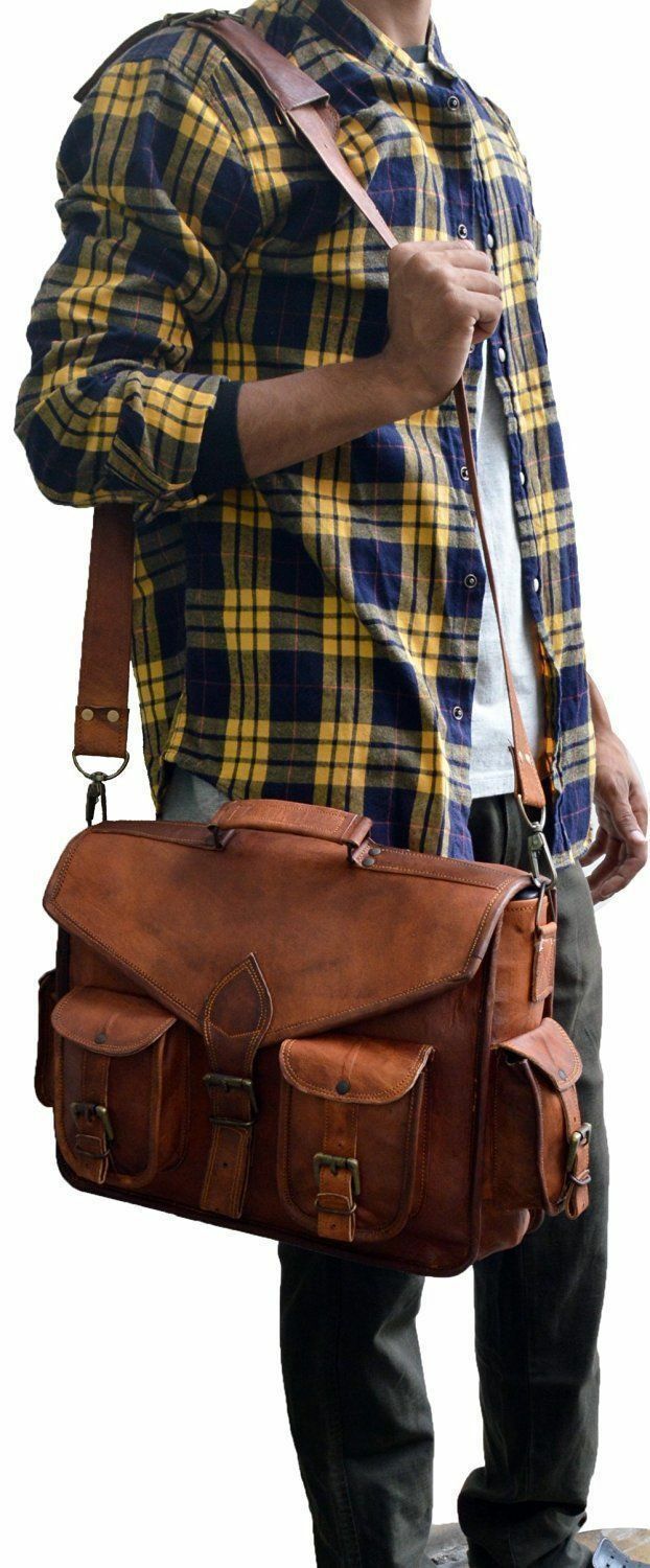 Men's Leather Messenger Satchel Shoulder Briefcase Business Bag - Leather Bags Best Product in Leather Bags Descriptions: 100% genuine goat leather messenger bag with a durable inner lining made of canvas. Designed to carry 15" laptops, tab, documents or other personal belongings, etc. A genuine hand made product using Natural leather. Natural oils and light have been used to obtain the style of the leather - chemical free! This bag features a wonderful unique and vintage look, designed to carry mini laptops, tab, documents, personal belongings etc. Perfect for the office, school or as a gift! Specifications: Made from 100% genuine, strong, lightweight, durable goat leather, tanned without the use of chemicals Adjustable shoulder strap, half flap bag with strap lock & 2 small front pocket. big inner compartment for carrying files, mini laptop's, tab's etc. 2 zipper compartments for important documents/paperwork etc. Inner canvas lining Vintage leather wash Leather softens and darkens with use Handmade in India by experienced craftspeople Size: 15" Wide X 11" Long X 4" Deep Item Description:- Material- Real Goat hide ( sustained ) Size- 11"(L), 15"(W), 4"(D) 2 Front pockets, handle on top. Total 4 compartments inside with green color strong canvas lining. 54" long adjustable shoulder broad strap. Real Brass metal accessories used in this Bag. Made by professional and experienced artisans from Rajasthan. Treated by natural ingredients. Natural leather smell will go away within few days from the usage of this bag. Eco friendly and weather resistant. RETURN POLICY Please provide your telephone number as well, so that the post office can contact you when your item arrives, or the item will be sent back to us. We will not be able to resend the item in that case so please make sure to provide your contact number. • In case of return of the goods, buyer has to borne the shipping charges. • Customs duties and other duties levies in destination country are responsibility of the customer. • We will exchange the item if returned to us within 14 days of original packing. • The item should not be used. • No alterations Must be Done to Item. Otherwise We won't take it Back • Buyer Must Inform within Two days after Getting the product about any Issues with the Item. TERMS & CONDITIONS Customers are require to provide full & accurate information at the time of order. No warranty. Dry cleaning only. We use standard shipping carriers for national & international shipping. Accessories & Stitching Pieces shown in the image are just for photography purpose. There may be color variation due to difference in resolution of the photo & the actual color. Please clarify all your doubts before buying. In case the item is out of stock your entire amount will be refunded via the same way the payment was made. Offer price is for per piece. About Us We manufacture ethically designed leather bags of great quality. The most important thing, these bags are not factory made, all of our bags are locally handcrafted in countries. We offers customized designing and wholesale prices for bulk order. We welcomes you to come and visit our manufacturing unit. For more details, please write to us. Feedback • Please do not leave a negative feedback as a way to communicate. Any rating given to a seller can neither be changed nor modified. So better communicate for faster resolution to any disputes. • If you have any concerns regarding your purchase, please contact us via phone or mail, we assure you that a satisfactory resolution will be reached. • Please help us maintain a 5 Star DSR rating in all 4 rating categories, if you feel otherwise, please let us know how we can score a perfect rating from you before you rate us.
