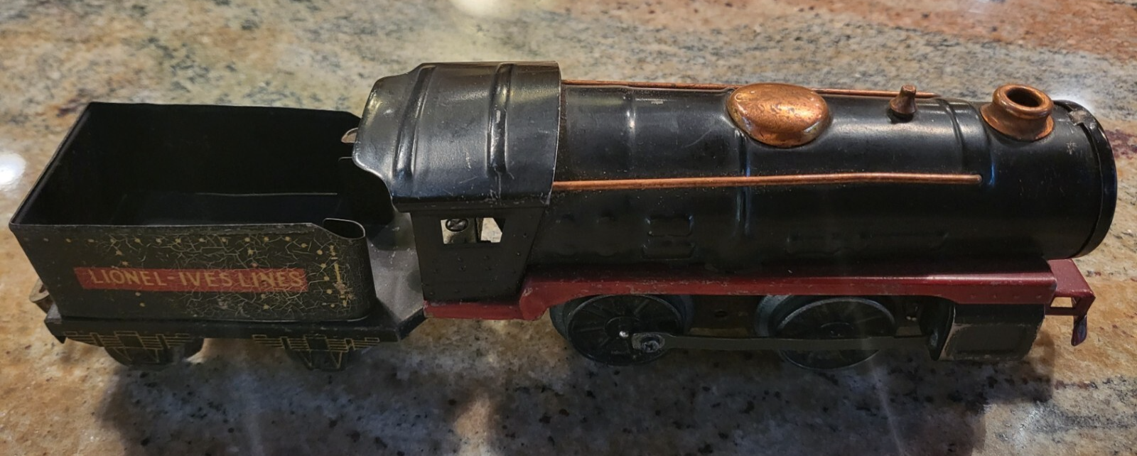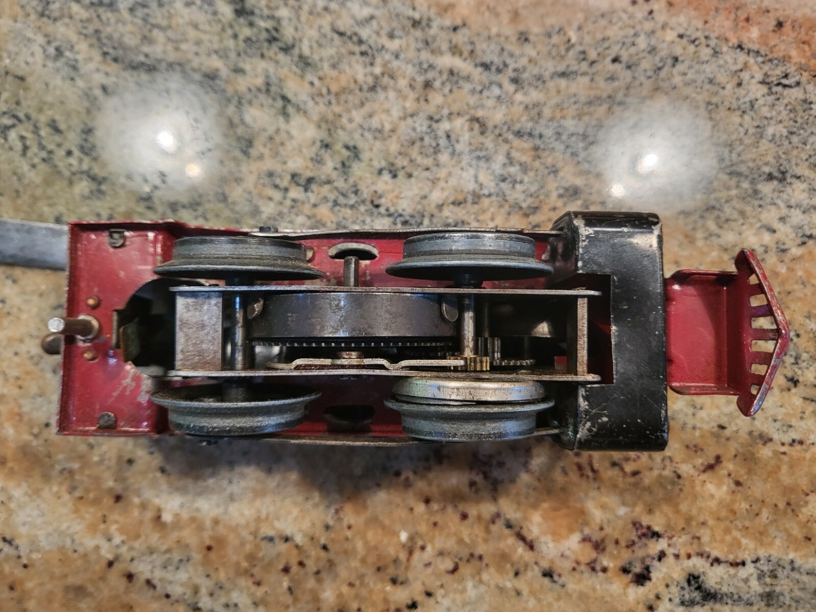 1934 Set #1529 #1506L loco.#1502 Lionel Lines wind up, Runs Good Removable Key (No Key) Black wheels Copper Trim Brake,Light,Bell (work) Play ware, see pic for details (AS IS) #1514 Boxcar #1515 Tank Car #1517 Caboose (No Couplers) (Brown Roof,Brown Cupola Roof) Play ware, see pic for details (AS IS)