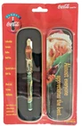 Enhance your collection with this vintage set of 3 Coca-Cola Ceramic Roller Ball Pens, each comes in a collector tin. The pens feature the iconic Coca-Cola branding and are perfect for any soda or advertising enthusiast. The multi-color design adds a pop of color to your collection, and the original ceramic material makes it a unique addition to your pens and pencils collection. Each set is new in original packaging and have not been opened/used or tested. UPC 042528680456 - 1995 "Santa Almost everyone appreciates the best" UPC 042528680463 - 1996 "Coca-Cola bottle" UPC 042528680791 - 1997 "Coca-Cola Red Dispenser"
