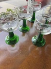 The Vintage Luminarc France Crystal D'arques Green Wine Glasses are a set of six elegant wine glasses perfect for all occasions. Made of crystal with a glossy finish, these 4.5 inch tall glasses have a vintage charm and are of French origin. The green color adds a touch of sophistication to your table setting, making them a stylish and timeless addition to your drinkware collection. Cheers!