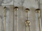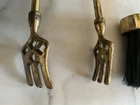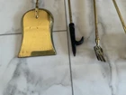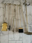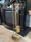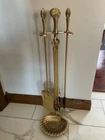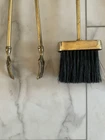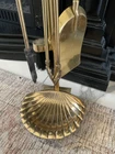 This vintage MCM brass clam shell fireplace tool set is a perfect addition to your fireplace. The set includes a stand, shovel, fire poker, tongs, and brush, all crafted with high-quality brass material. The gold color and retro style of the set make it a great companion for any home decor. The heavy-duty tools are designed to ensure easy and efficient cleaning of your fireplace. The set is also unique in its application, making it an ideal choice for anyone who wants to add a touch of vintage charm to their home. This is a heavy duty set ,in very good used condition.Items will be packed quickly and shipped safely by USPS ,FEDEX OR UPS Depending on buyers location. Thanks