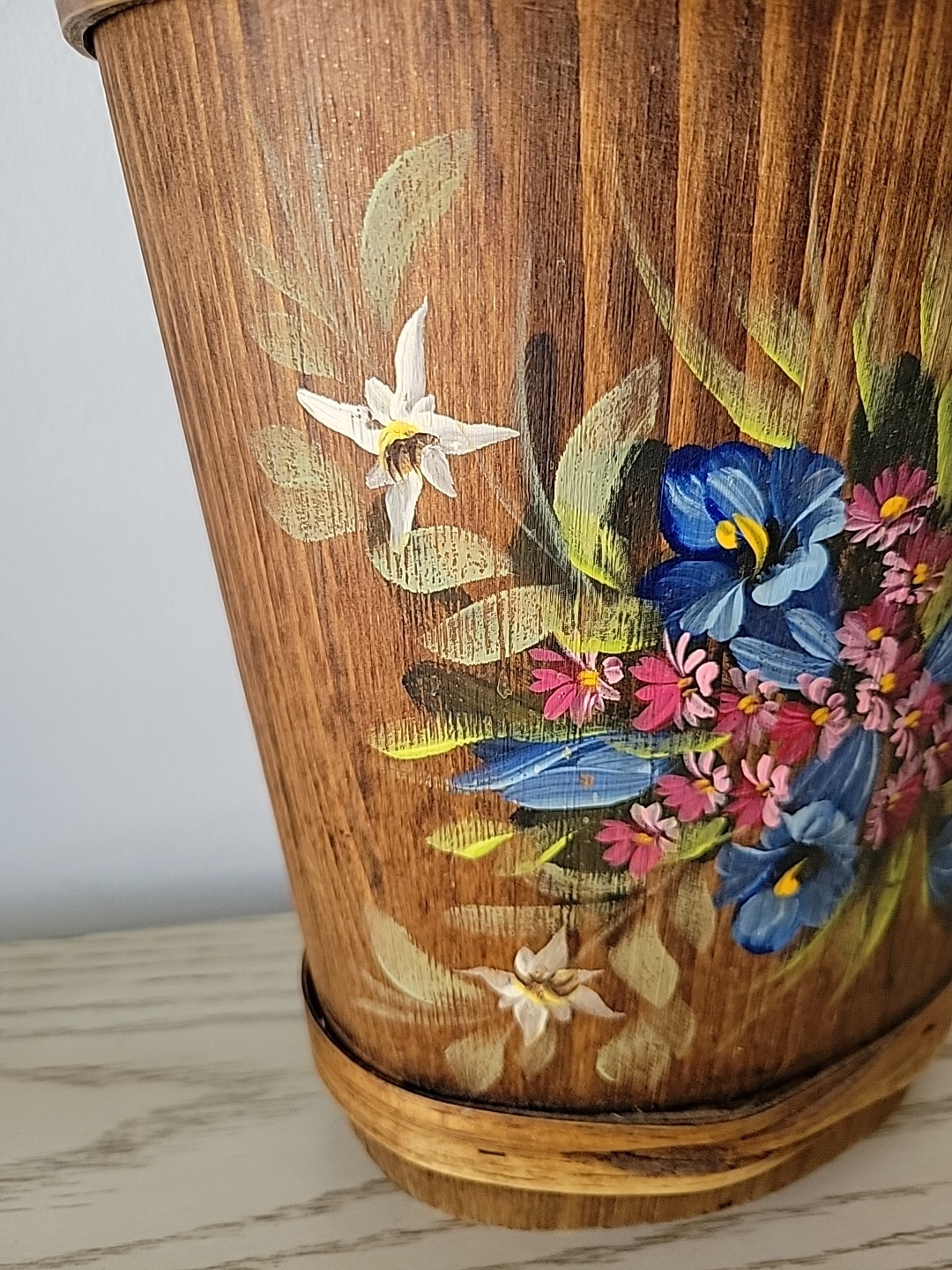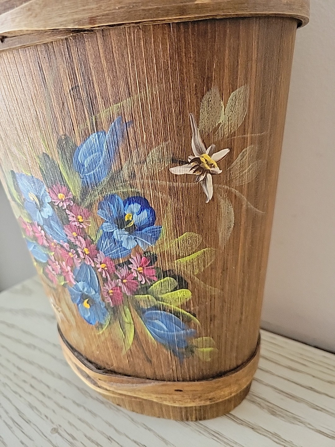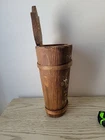 Vintage MCM Carved Wood Bamboo Bavarian Hand-Painted Umbrella Stand