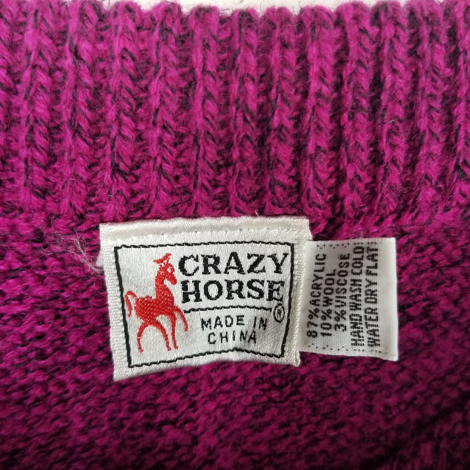 Vintage sweater skirt Crazy Horse brand magenta pink with a but of black in the knit midi length elastic pull-on waist wool blend knit excellent vintage condition no size, probably s/m, review measurements carefully bright colorful dopamine dressing maximalist bold 90s 80s suiting dressy classy classic casual