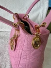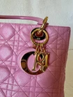 This is a vintage Christian Dior Lady Dior model from an era without bottom studs. The supple lambskin creates a natural form and luxurious feel. The bag is in beautiful condition with no metal dulling, and no scuffs or stains overall. There is one area of corner wear, as shown in photo 14. While mostly free of dirt, there may be slight discoloration or dirt due to age, but there are no noticeable stains or scratches. Color: Pink. Pattern/Type: Leather/Lambskin. Bag Size: Lady Dior (not a 2-way model). Size: Approximately 7.48 inches tall x 9.45 inches wide x 4.72 inches deep. Accessories: Storage bag (stained). I promise fast shipping via FedEx or DHL as soon as possible! Import duties, taxes and charges are not included in the item price or shipping charges. These charges are the buyer’s responsibility. These charges are normally collected by the delivering freight (shipping) company or when you pick the item up - do not confuse them for additional shipping charges.