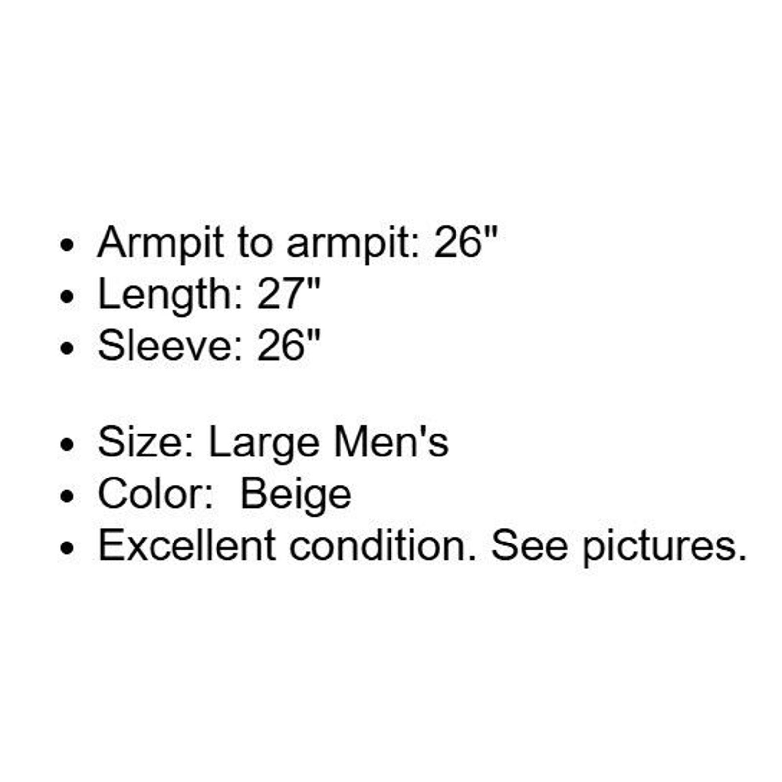 Members Only Jacket Men's Large Beige Full Zip Lightweight Pockets Lined Vintage * Armpit to armpit: 26" * Length: 27" * Sleeve: 26" * Size: Large Men's * Color: Beige * Excellent condition. See pictures. All items from smoke-free, pet-free home. Thank you for stopping by my listing.
