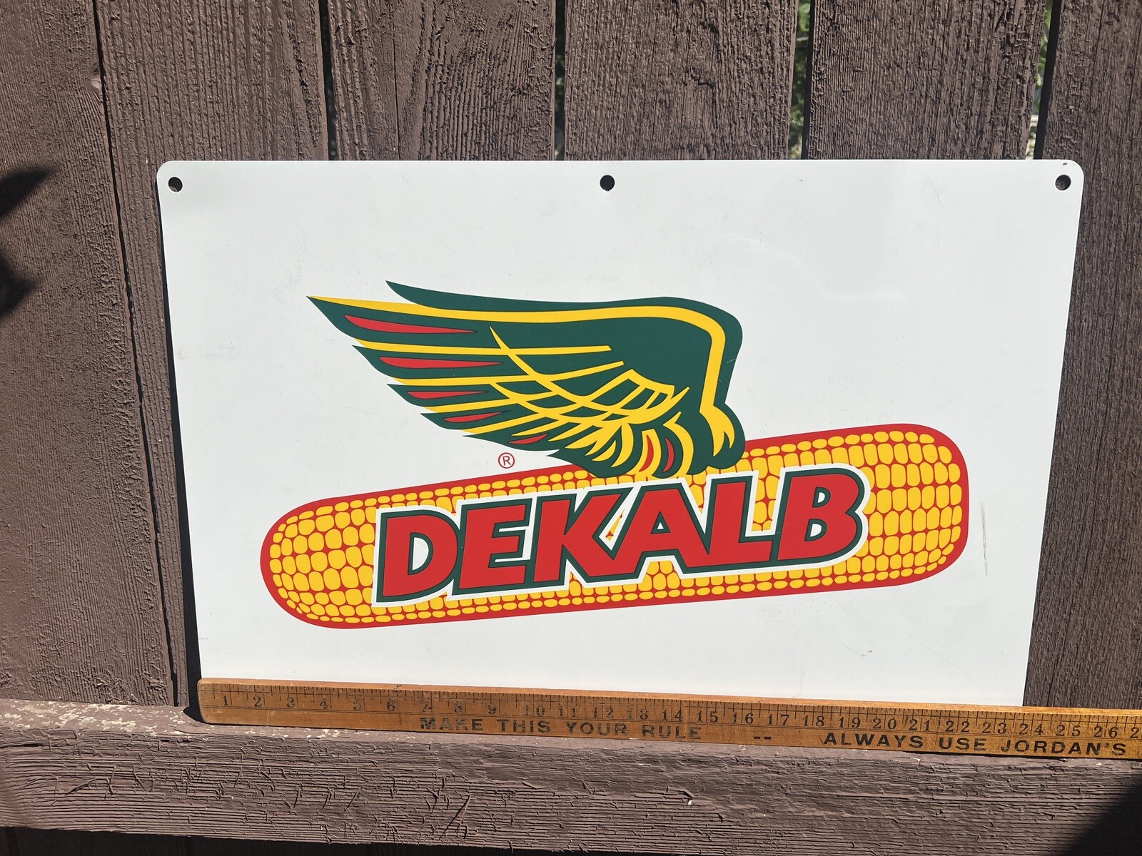 This vintage metal sign features the iconic John Deere 24" x 16" and is a perfect addition to any collection. The sign is an original piece from 1963 and has been well-preserved over the years. It features multi-color printing and showcases the theme of agriculture. The sign was manufactured in the United States and is a great representation of the time period. The Dekalb/Asgrow brand is known for its quality products in the agriculture industry. This sign is no exception, as it is a unique and eye-catching piece that will surely impress any collector. It is perfect for display in a garage, man cave, or any other space. Add this original and authentic piece to your collection today.