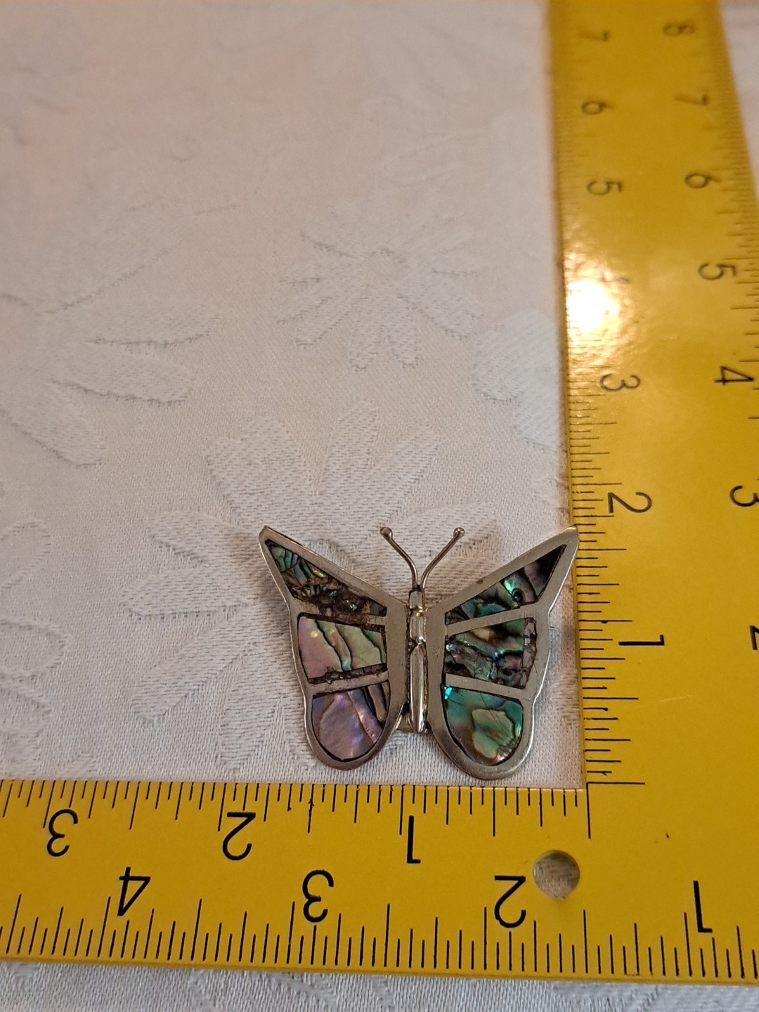 This vintage Mexican silver abalone butterfly brooch pin is a beautiful and unique piece signed by the brand Taxco. The intricate design of the butterfly shape adds a touch of elegance to any outfit, while the silver color gives it a timeless and classic look. As a vintage piece, it carries a sense of history and craftsmanship that makes it a special addition to any jewelry collection. Perfect for those who appreciate unique and artisanal pieces, this brooch is sure to be a statement accessory.