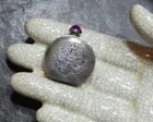 Vintage Mexico Etched Silver Miniature Perfume Bottle Flask w/Dauber Particulars Vintage Mexico etched silver miniature perfume bottle/flask Purple jeweled screw-on cap with dauber Materials Silver Hardware Screw cap Measurements 1 3/8" tall Signed Stamped SILVER MEXICO Condition Very Good Listed as found/I always leave cleaning of vintage items to method/discretion of buyer Previously owned Estate find Era Retro Vintage Comments From large estate jewelry collection buy-out, Germantown, Tennessee Terms ATTENTION BUYERS No 3rd party shippers No PO boxes No APO-FPOs Buyers with established & consistent eBay feedback only Issues with feedback and/or shipping address will result in purchase being cancelled Shipped from a smoke-free environment Insurance Included USPS tracking for delivery confirmation Submit your BEST offer! Please view supersize images below for best description Before You Buy Most of my items are vintage or antique, and as such, they are not new They have lived long, eventful lives before finding their way to me or to you I take great care in presenting only exceptional quality offerings, and to describe items as accurately as possible I try to include photos in a range of angles & close-ups Be sure to take note of actual measurements; as pictures are enlarged to show detail for your benefit I also try to include any history of item if available, and to note any distracting imperfections If you have any questions, please feel free to ask My goal is always a memorable buying experience & happy customers Your FIVE STAR POSITIVE FEEDBACK is appreciated Please add BUBBLEPUNK to your favorite sellers list Thank you ever so much for choosing to shop my Bubblepunk store, Susan EBAY AUTOMATICALLY CANCELS ANY PURCHASE NOT PAID-FOR WITHIN 3 DAYS YOUR PURCHASE WILL USUALLY SHIP WITHIN 1-2 BUSINESS DAYS OF CLEARED PAYMENT WEEKENDS AND HOLIDAYS EXCLUDED MOST ITEMS CAN BE COMBINED SAFELY FOR SHIPPING DISCOUNT TO BE ELIGIBLE FOR SHIPPING DISCOUNT DO NO PAY UNTIL YOU ARE FINISHED SHOPPING ITEMS MUST BE PAID-FOR IN SAME CHECKOUT EBAY CHECKOUT WILL AUTOMATICALLY REFLECT COMBINED SHIPPING DISCOUNT ITEMS PAID-FOR SEPARATELY ARE NOT ELIGIBLE FOR COMBINED SHIPPING OR SHIPPING DISCOUNT SORRY, NO EXCEPTIONS txzj pxzj28637 txzj-11 txzj5 txzj85 txzj115