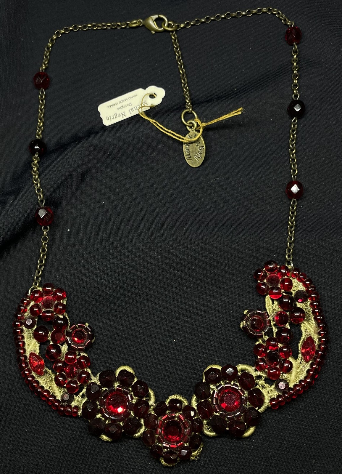 Necklace Lovely Michal NEGRIN Crystals Flowers fabric Old collection Size: necklace 45 cm = 18.0" The necklace is brand new. Not used. All items was purchased at Michal Negrin store. That was closed down all %100 original. Please, see all photos. Item sell as is!!! Shipping world wide via registers air mail. Signed for mail. I do combine shipping. Please check out my other items!