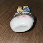 Miniature Porcelain Engagement Ring Couple Metal Closure Box Vintage