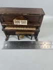 Vintage Miniature Wooden Upright Piano w/ Bench Dollhouse Decor Made in Taiwan ⸻ Description (eBay) Vintage miniature wooden upright piano with matching bench. Made in Taiwan (label on back). Great piece for dollhouse display, miniature room decor, or collector’s display. Approx. Size: 5.25 x 4 x 2.5 inches Condition: Pre-owned vintage condition with surface wear, scuffs, and age-related marks (see photos). Includes piano and bench only. Perfect for collectors of miniatures, dollhouse furniture, or music-themed decor.