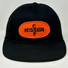 Mission CP CSP Patch Trucker Hat Vintage 80s Black Sportscap Six Panel Mesh Snapback Baseball Cap Will be shipped in a box. Condition: In gently used condition. No flaws noticed. Has been cleaned and sanitized. See photos.