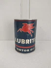 Vintage Mobiloil Lubrite Pegasus 1 One Quart Metal Motor Oil Can B-1341-Y Empty