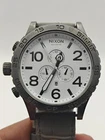 Vintage NIXON 51-30 SIMPLIFY Men's 300M Chronograph Silver & White Wristwatch Approximate Measurements: Case Size With Crown: 57.1mm Case Size Without Crown: 51mm Lug to Lug Width: 61.7mm Movement: Quartz Item Condition: The Watch is in fully Working Condition. It Comes With After Market Strap. It has less signs of usage. You can see the photos for more details. Photos are also a part of description. Shipping Worldwide: Fed Ex UPS Charges:$25 Takes only 12 to 23 Days. for remote area buyer has to pay $30 additional . Respected Buyers Please Read Before Buying an item: Please make sure you have seen all the photos and read the description. I have attempted my best to describe the actual condition of watch as much always here to give the best possible reply to our respected buyers. > Buyer Is Responsible for any import taxes. > We do not test watches for waterproof. This item is use. Please carefully inspect our photographs. We have tried to describe this item as accurately as possible. However. It may contain small imperfections that are difficult to show in photog Please Fell Free To Give Offer. We Accept Offer. But please don't devalue I balling. Grateful to You Visited My Watch house. Buy With Confidence RETURN POLICY: If The Item is not Described as description.