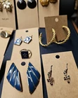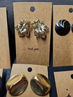 You are bidding on a Earrings Lot of 12 Navy Blue, Gold Tone, Leaf design Earrings Vintage. This lot is preowned in good condition. Some of the earring in the lot range from vintage to enamel, gold tone, Leaf design. There are small areas of wear on the earring but over all in good condition. Please use pictures as part of the description for these items. Please feel free to ask questions before bidding. All bids are final thankyou and happy bidding.