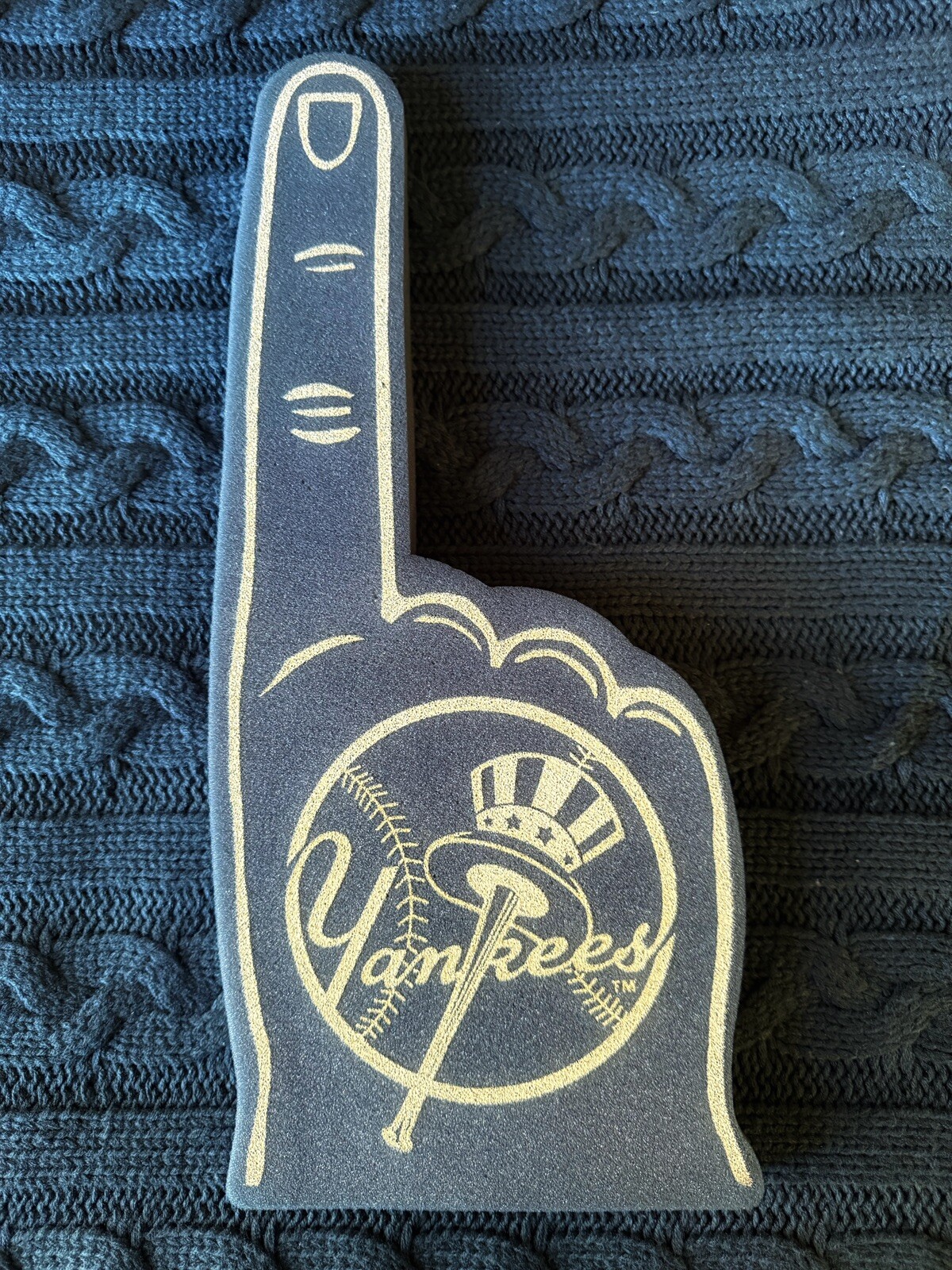 Show your support for the New York Yankees with this vintage 18 1/2” foam finger! This officially licensed MLB product is perfect for any die-hard baseball fan. The black foam finger is adorned with the iconic New York Yankees logo and is designed to fit comfortably in your hand. This unisex adult foam finger is made in the United States and is perfect for wearing to games during the regular season. Whether you're a seasoned fan or just starting out, this foam finger is a must-have for any Yankees supporter. Add it to your collection of sports memorabilia today!