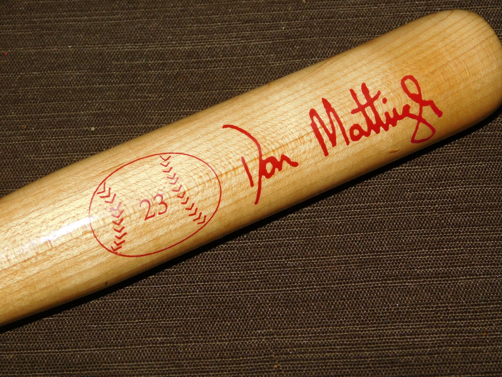 YOU ARE BIDDING ON...... . . .. VINTAGE NEW YORK YANKEES BASEBALL DON MATTINGLY 18" WOOD MINI BAT SOUVENIR ...**NOT A REAL LIVE SIGNATURE AUTOGRAPH**.... ..SHOWS SOME HANDLING/AGE WEAR..HAS SCRATCHES/AGE DISCOLORATION..... ..PLEASE VIEW PHOTOS FOR CONDITION.***PLEASE E-MAIL IF YOU HAVE A QUESTION OR WANT AN ADDITIONAL PICTURE....PLEASE VISIT MY EBAY STORE FOR ADDITIONAL VINTAGE ITEMS..THANK YOU***5U-BX3130-1111