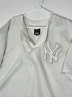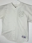 Vintage New York Yankees MLB Jersey Mens 2XL White Gray Majestic Blank Made USA RARE Decent - to - okay condition overall - flaws is staining - see ALL photos very closely Jersey is solid overall condition overall - however has a series of multiple sized little small light brown staining spots/marks throughout both the front/back side - varies sizes throughout the whole jersey some faint some a little more dark - has some light discoloration in color on the jersey - still fresh white/gray overall - see ALL photos very closely for condition of the jersey Will ship with care