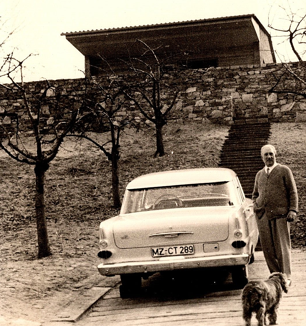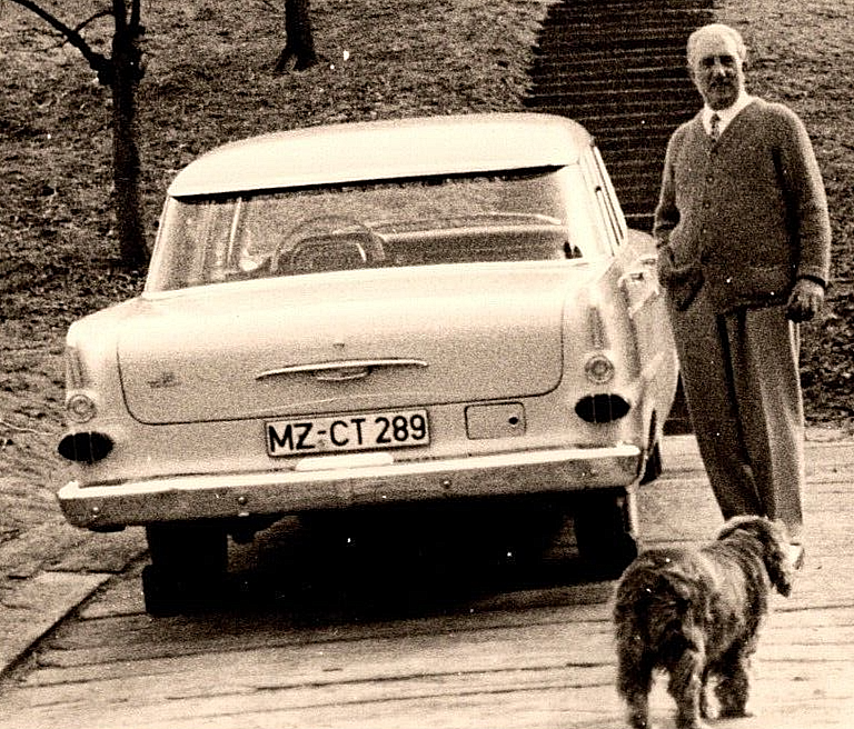 This vintage Opel Kapitän photo is a charming glimpse into the past! The man and dog posing by the rock wall and stairs give it such character. Perfect for collectors or anyone who loves unique historical images—great detail and a wonderful conversation piece. Highly recommend!