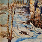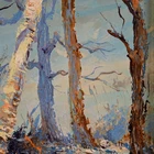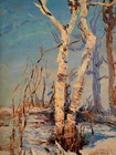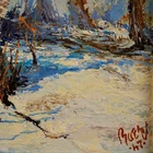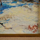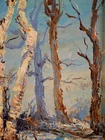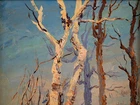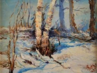 The Vintage ( Circa.1947 ) Framed Original Impressionist Landscape Oil Painting on Panel "Winter Forest" , Signature 'Buehl' and Dated '47' in Lower Right. It Depicts A Calm Snowy Winter Forest Scene with Birches Bathed in Fresh, Warm Sunlight During Sunrise. The Painting Captures A Morning Winter Forest Scene Full of Vitality Well, Given the Warm Light on the Trees Trunks and the Shadows on the Snow. A Sense of Tranquility and the Beauty of Nature in Winter, with the Interplay of Light and Shadow Creating A Striking Visual Contrast. The Thick Textured Impasto Brushstrokes is Adding Depth and Tactile Quality to the Snow and Tree Bark. The Painting Shows Minor Craquelure, Surface Dirt, and Some Wear on the Frame Consistent with Age, In Good Condition. Title: "Winter Forest" Artist: Buehl Time Period: 1947 Medium: Oil on Panel Condition: Good Condition Frame Size: 14-1/2" By 12-1/2" Sight Size: 9-1/2" By 7-1/2" Available For Domestic Shipping and International Shipping. Thanks!