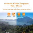 Classic Pilot Sunglasses: retro oversized aviator sunglasses are vintage inspired but with modern aesthetic look, suitable for both women and men Perfect for Different Occasions: These 70s 80s vintage oversized aviator sunglasses combined with trendy tinted frames, providing sufficient choices to match with your various styles of outfits. It’s fun to wear while driving, parties, disco, concert, beach time etc Solid Sturdy Materials: trendy oversized aviator sunglasses use polycarbonate plastic material for frame and lenses. Lenses are high definition providing sharp vision. They are built for long term use UV400 Protection Lenses: fashion oversized aviator sunglasses are 100% UV400 rated, providing effective protection for your eyes by blocking harmful UVA UVB rays & bright light in any weather and condition, bring you high quality fashion experience in sunshine Sunglasses Dimension: Lens Width: 70 mm (2.8 inches), Lens Height: 62 mm (2.4 inches), Temple Length: 133 mm (5.3 inches), Nose Bridge: 20 mm (0.8 inches), Frame Width: 148 mm (5.9 inches). Attention: Manual measure, there may be 1 - 3 mm error