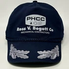 Vintage PHCC Mechanical Contractors Hat Baseball Cap Ross V Bogott Co Plumbing Heating Cooling Contractors Scrambled Eggs Gray Gold Leaves Leaf Rope Roping Cord Corded 80s Blue Five Panel A-Frame Snapback San Sun Will be shipped in a box. CONDITION: Has a faint dark spot on the top of the bill and some pilling of the fabric under the bill. No other flaws noticed. Has been cleaned and sanitized. See photos.