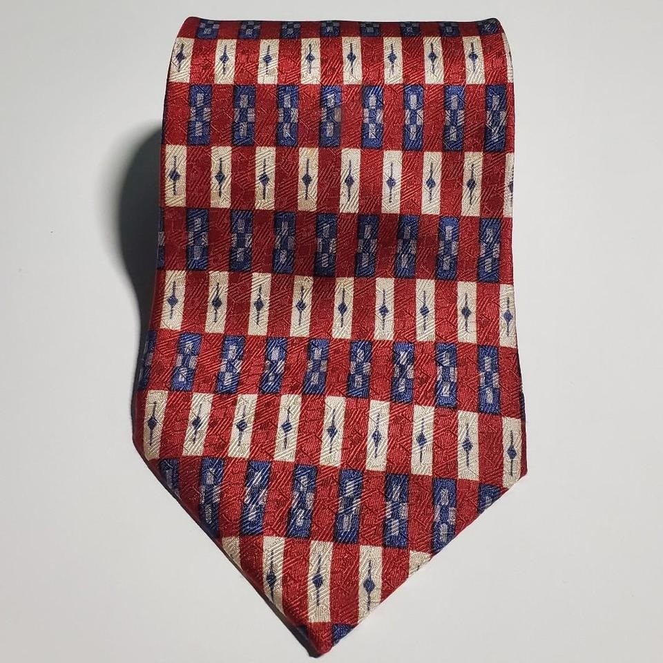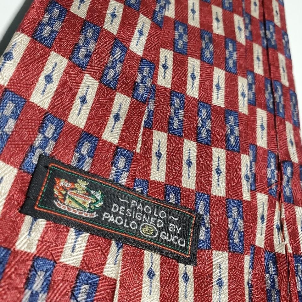 Vintage Paola Gucci 100% Silk Red White and Blue Pattern Neck Tie Excellent Condition #PaoloGucci #Vintage #Silk #Red #Tie silk tie, geometric pattern, patriotic colors, red white blue, vintage accessory, formal wear, Italian design, classic tie, retro style, luxury fabric