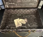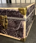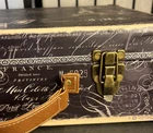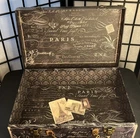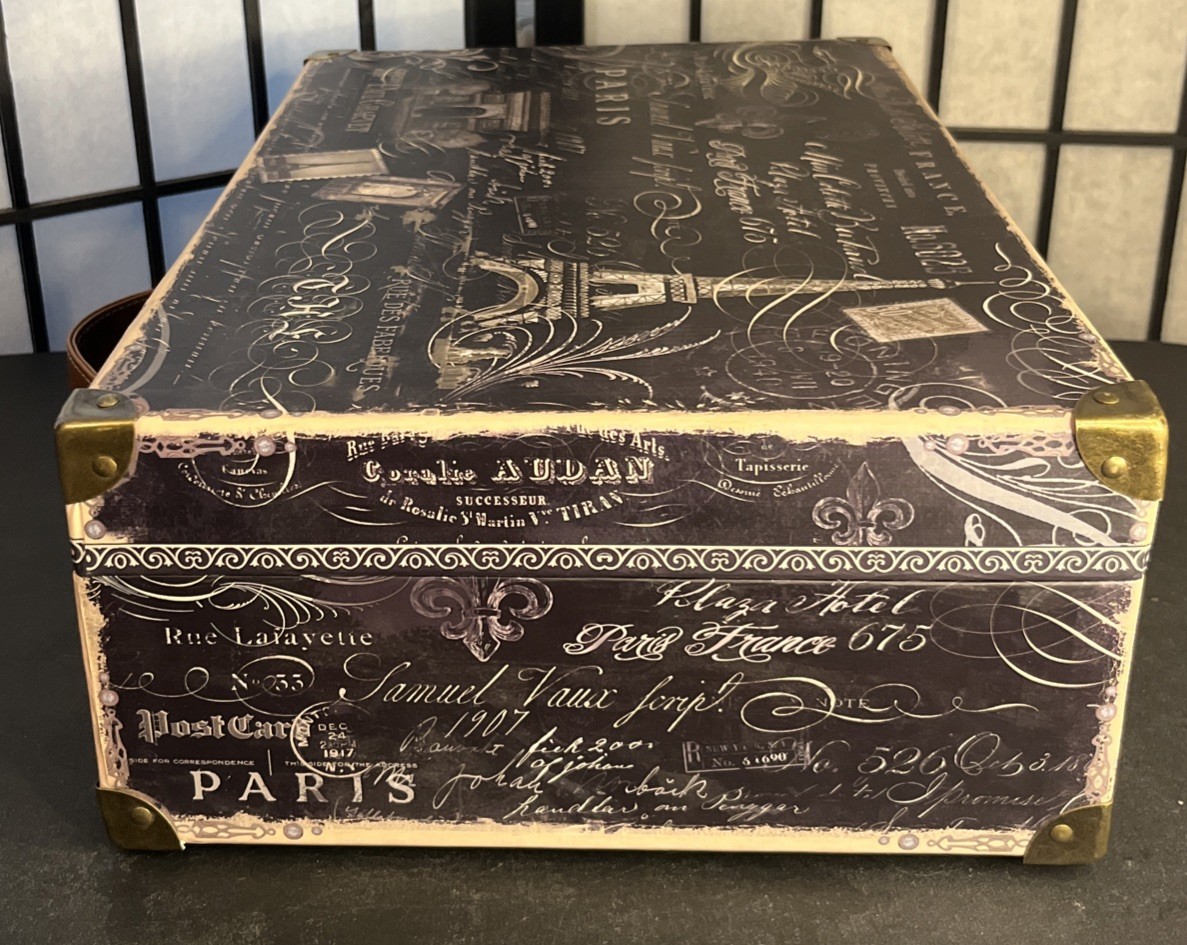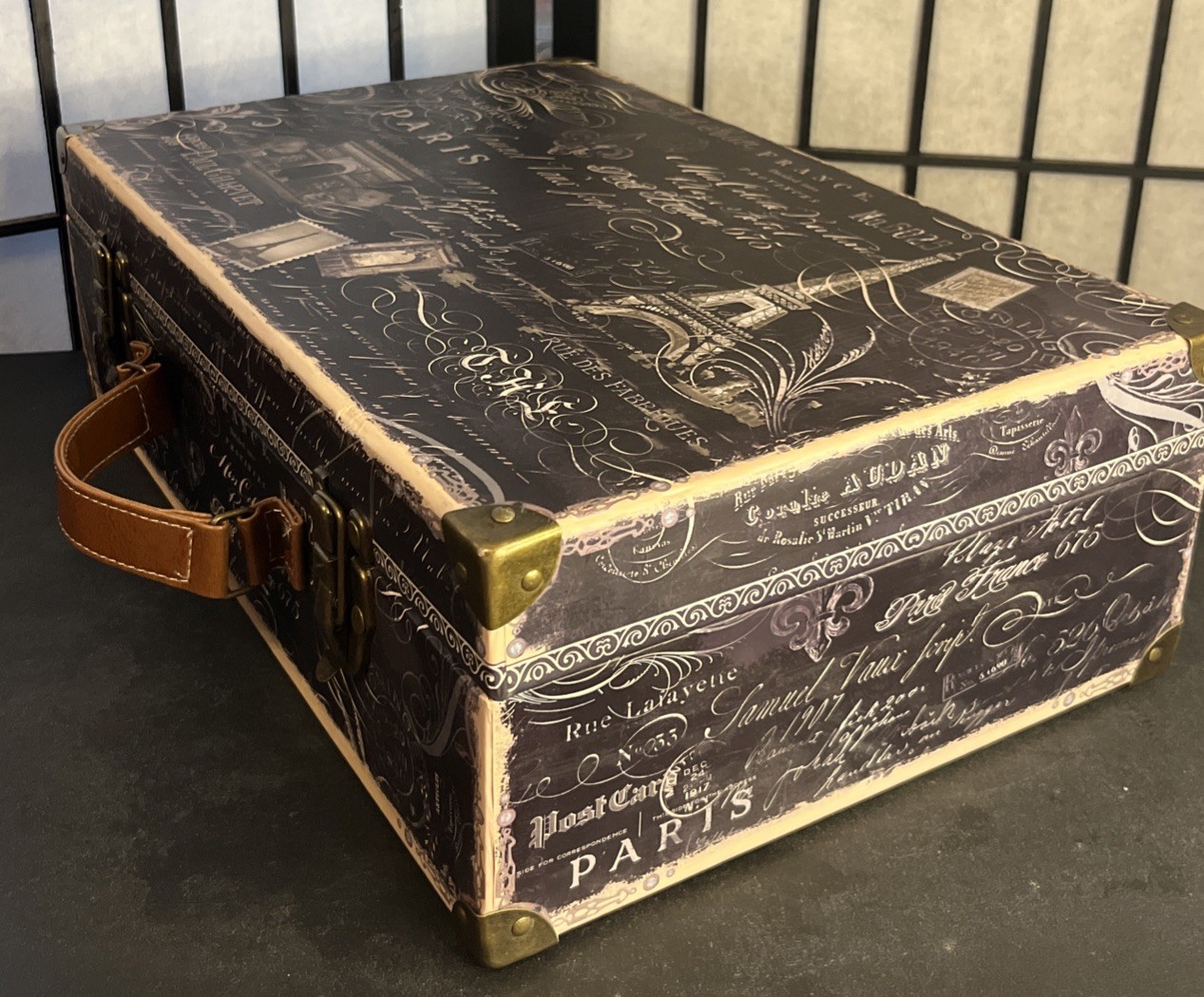 The "Suitcase" Box Paris France themed gift box is a large, decorative cardboard box designed to resemble a suitcase. Well made. Strong With a brown/beige color scheme and Paris France theme, this suitcase-shaped box is perfect for all occasions as a unique and stylish gift for adults. The one-piece set includes a single suitcase box, making it a versatile and eye-catching option for gift-giving., storage or anything else you can think of it’s quite large for a storage box measuring 16 1/2“ x 11“ and 5 1/2 inches deep