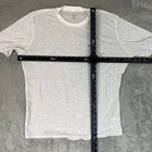 Brand: Patagonia Line/Model: Capilene performance base layer Tag size: XL (Mens) Color: Heather gray with white ribbed crewneck Front detail: Small Patagonia script logo at left chest Material: 100% Polyester Made in USA RN: 51884 UPC: 715353205056 Features: Short sleeves, lightweight breathable knit, classic crewneck design Notes: Vintage item; compare to a similar shirt for preferred fit.
