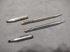 This is a lot of two mechanical pencils and one pen. The pencils have a piece of lead in them. They work fine. One needs an eraser. The pen, I could not get to roll up or down. I took it apart so you could see the details. Good lot for collector. 🙂Thank you for considering my item! I accept questions and try to answer within 24 hrs. 📦If you see something else you like, combined shipping is available upon request and is calculated (using eBay calculator) by weight, size and destination.🛣️ 🕵️♀️Please view all pictures carefully as they are part of the description. 🚚 I try to ship within 2 days of purchase ({however}) items purchased on Friday may be shipped the following Monday or next available postal day.📬 🫴💲All *REASONABLE* offers are considered...if *MAKE OFFER* is part of the listing. 🟠 Please note 🔁 Returns are accepted and refunds given ONLY if there has been a mistake in the listing of the item or shipping damage occurs due to packaging. I try to make sure that I describe my items carefully and package safely..... This is reflected in my feedback. 🌟 Good service, communication and satisfied customers are my goals! 😊